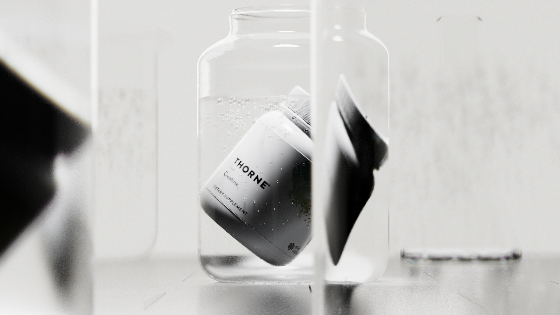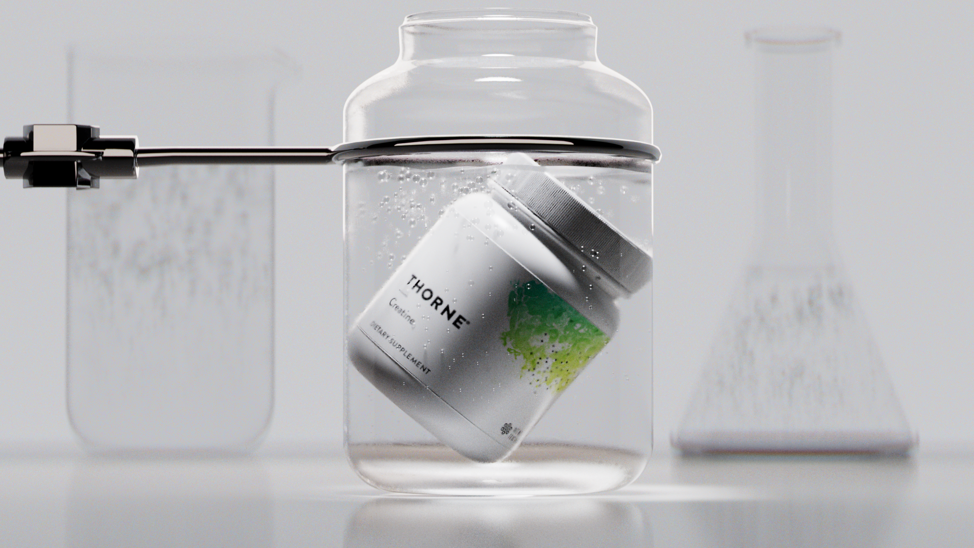 We explored the use of fluid systems and particle visuals to convey the essence of Thorne’s new creatine product, highlighting its purity, energy, and performance benefits